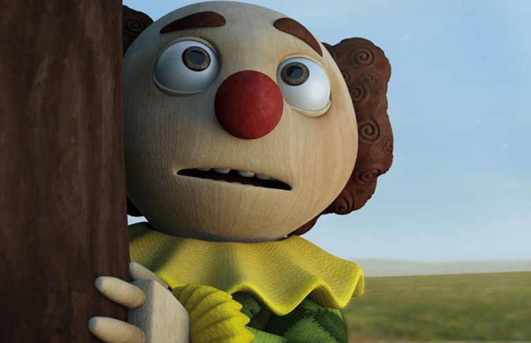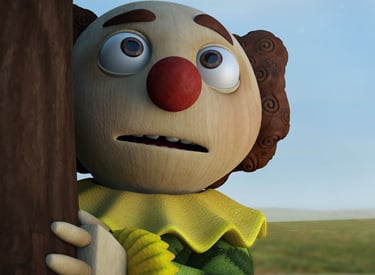 The surprise waiting for the clown doll when he discovers his unique hat is not on his head when he went out of the surprises box!