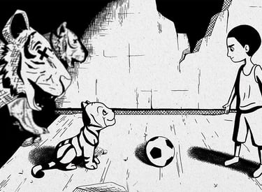 A window opens on a child who lives in a war torn area where he longs for his favorite sport football and a moment of normal childhood.